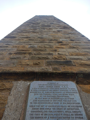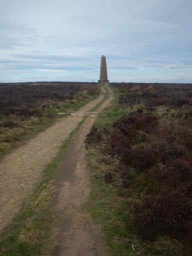 My alarm goes off at half past 5 and I groan. I know we can’t sleepin and poke Joe awake. His indistinguishable murmur shows the feeling is mutual. I crawl out the tent and see just how visible our sleeping spot had been. Were slow to take down and fold away the tent, I glare at the large rock I’d been sleeping on. We limp back to the flaking wooden bench which was probably older than us. Soon were joined by track workers who are doing a bit of renovating to the station. They give us strange looks, two bedraggled hobos hanging out in the middle of nowhere looking pretty worse for wear. We cook our last packet of noodles between us and creak onwards out of the village, a little climb warmly us up. The stamping location – a lovely little cafe was unfortunately closed and didn’t open till 11am which was too late and we couldn’t hang around. We leave the little village passing Bankside Farm and climb gaining height we appeared on top of Coate Moor. We arrive in a forest many of the trees undergoing felling, they’re mainly pine trees, the smell of fresh wood was delicious. A few early morning joggers passed us by and we ascended slowly upwards. We entered moorland again and found a huge pillar in dedication to Captain Cook. From the pillar we brace ourselves for the strong winds and observe the Cleveland Hills, look down into Great Ayton, across to Roseberry topping and back deep into the North Yorkshire Moors.