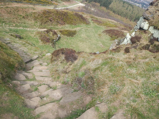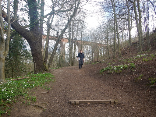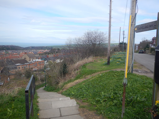 Onwards we plodded and sailed swiftly out of moorland and into Guisborough Woods. Wind whistling directly into our faces, I was pleased to gain cover from the tall evergreens even if their creaking was unnerving at time. We paused for lunch over looking the edge of a town below, angel cake was my choice of food. A sweaty biker in a high gear nodded at us as sat there chomping gladly not to be moving and in the warmth of the sun. I could see the opposite side of the valley, our path to come – sunlight was hitting it in waves in between passing clouds. I carefully stood and could feel my feet squeaking in anger. Long way still to go. We descended into the tree valley and came across a little motorized school, no vehicles were present but lots of tracks still lined the dirt. Now down at road level we cross the A171 and entered a quarry of some sort, a path of wooden steps lined the outer edge and up we went. Once at the top we chilled and I laid on the comfy grass blissfully soaking up the sunlight. It was bliss to be out the force wind and now covered in warmth. Joe applied some zinc oxide tape to my blisters making a lot happier. It wasn’t far to go now, we entered a field full of green, leafy grass which was bowing to the wind. It looked like a windows XP desktop. A family on bikes ride towards us and asks us what is back where we have come from. Due to all the steps we’ve just climbed we recommend it’s not for bikes and they zoom on ahead of us. We continue down into a Skelton and got a drink and some chicken. We return to the verdant surroundings were growing accustomed to and follow the Skelton beck as it winds in and out of the forest. Then the Skelton viaduct comes into view a huge red brick structure, old but still used how it should be. We wandered slowly beneath its arches in awe. It would have been great to have slept beneath it but it wasn’t time for us to call it a day yet. Walking on town life grows evidently through many more walkers and traffic noises issuing from ahead. So we walked on to the next town – Saltburn by the Sea and see our first glimpses of the sea. The victorian Cliff lift and Pier look impressive and still in good condition given their age.