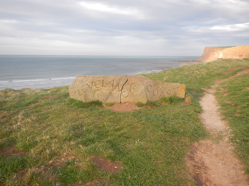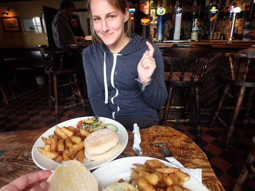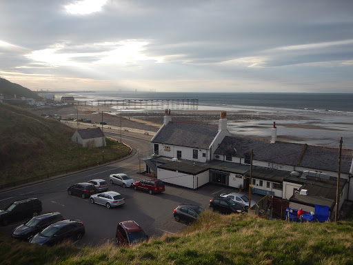 We arrived in Saltburn and first proceeded to collect out next stamp. We got it from the library and our next port of call is food and end up in the The Ship Inn. It was pleasantly empty, only a few locals. We sit down heavily feeling what it must feel like to be 70. I glance down the menu but already know what I want – a 6 ounce cheeseburger with the trimmings and when it arrives it doesn’t disappoint. It’s huge and nestled in a soft white bread cake with about 3 potatoes worth of chips beside it. We are satisfied to have finally found our food but so full and don’t move for an hour afterwards, the wind beaten waves not at all encouraging to venture outside. We resupply and repack our food laden bags. From here on out we’ll be walking with the sea directly on our left meaning an increased wind and fewer spots to sleep hidden.