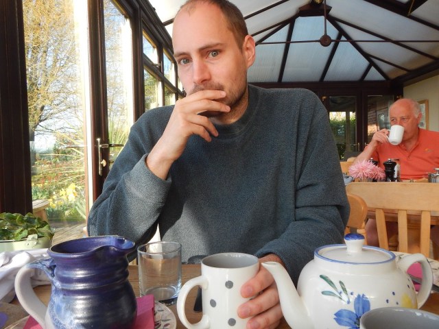 Up for 7ish I was so eager to get moving. We had about 25 miles to complete before sun down and we were so close to home. If we could get there before the end of the day we could sleep in real beds and have a a lie in tomorrow. I had time to kill so got another shower, using the old towel which was hanging up in the bathroom. Then I headed through for breakfast which was amazing. A few other walkers were already seated in the large conservatory overlooking the large garden of lambs and chickens. A side table was full of cereals, fruit, yoghurt, juice it looked amazing, then we were able to order an english breakfast to our liking. I had a bowl of honey-cheerios cereal, packed an apple for later and got some bacon and toast. SO good! We then got chatting with a walking couple who had been on a few walking holidays; Spain, New Zealand, France and Corsica were a few places they mentioned.