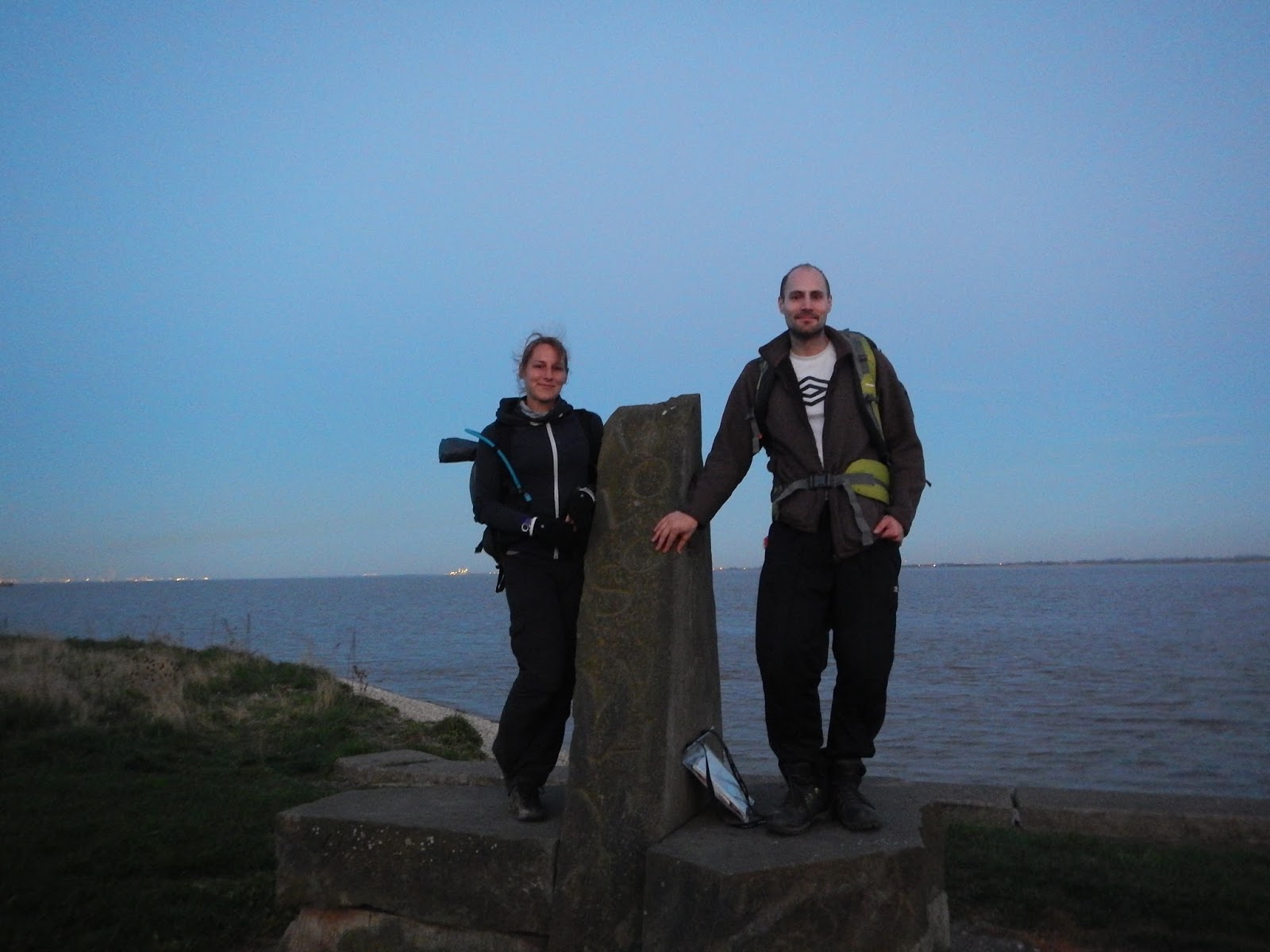 I look ahead and could see the eight red beacons of the Humber Bridge twinkling in the darkening sky. A golden twinge lingers above the horizon behind us and a silver crescent moon was flung up into the sky. 3 miles, 2 miles, 1.5miles, 1 miles, we could taste it now, 0.5miles to go and bingo! Our pace (of 2 miles per hour) doubled in eagerness. The worn stone pillar stood beckoning us over, signalling the end of the walk and our sign that we could stop. We had done it!