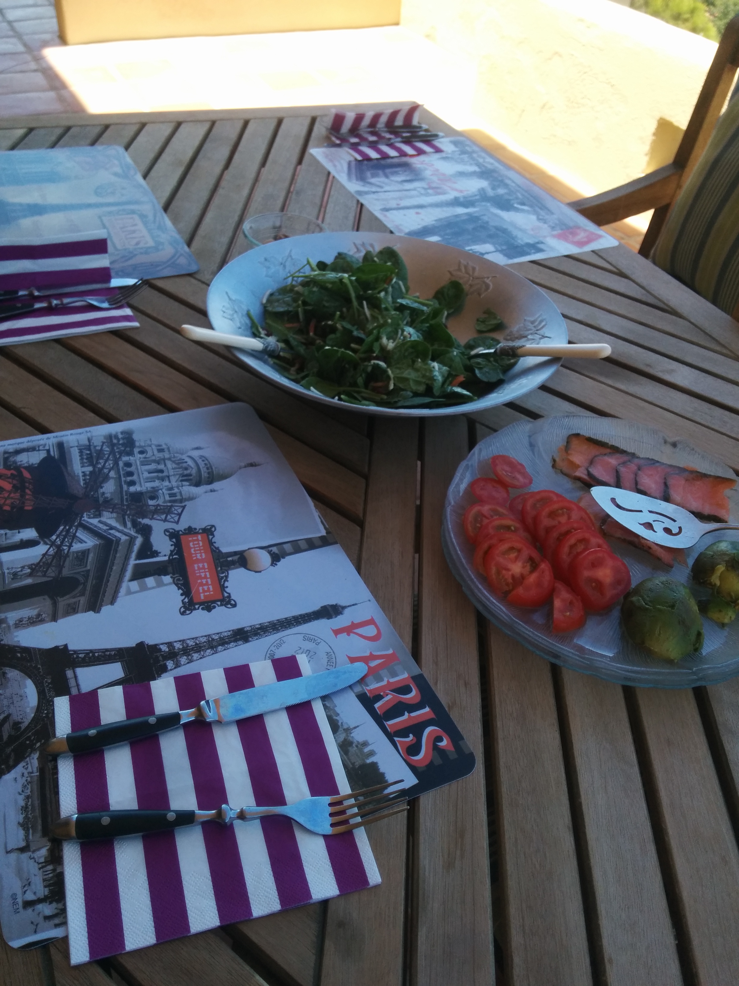 I’m pretty sure my jaw drops as I follow her to their amazing twin bed guest room complete with en-suite. The wifi password is framed and hung on the wall. A kettle sits on a table with a selection of hot drinks to choose from. She slides the doors shut, leaving me to shower. I don’t move momentarily feeling like I’ve stumbled into a dream. Returning to the real world I strip off and scrub down well. A collection of tiny bottles of soaps and shampoos sit ready for my use. They definitely know how to treat guests, never mind hiker trash such as myself. I press the towel to my body savouring the softness and now fresh feeling. Shame the clothes I was putting back on weren’t clean, I hold them up and smell the pit on my shirt to almost gag. Alas, I emerge a new person and help them carry plates out to the table keeping my arms tucked to my sides. A center piece of salmon and pomegranates lays ready for the three of us. Fresh salad lines our plates, my mouth begins to salivate. The fresh greens and pink salmon makes my taste buds tingle with excitement – and I’m not joking.