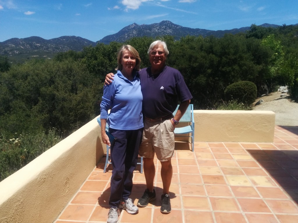 David turns down a street lined with fancy houses all large and neatly kept. We pull into a driveway, an electronic gate swings open and we cruise up the driveway. The house looks like it belongs in the Flintstones movie; large and white, deceiving in size. The garden is well kept with everything in its place, despite the harsh climate it looks stunning. We pull up round the back and park up beneath a sheltered spot. A woman who must be David’s wife appears. She wears a cap with the New Zealand emblem; a fern embroidered onto it and removes gardening gloves to shake hands. They welcome me inside and it feels like I’ve walked into an episode of cribs (when celebrities invite camera crews to check out their homes known as cribs). Their living room, kitchen and dining room are rolled into one and are open plan so it feels huge. There is a baby grand piano in one corner and an enormous fireplace in the other – I could have fit inside it easily. Olivia, David’s wife recommends that I sit on their balcony and I wander out into the Greek style platform, built to be cool in the heat. A magnificent view stretches out before me leading towards the Cleveland National Forest, green bushes spring up from the chaparral earth and give way to darkened mountains on the horizon. I slide down into a deck chair, admiring the view before me and try to comprehend my luck. I set about eating my egg and ham waffle combo, a napkin with the United States flag on it accompanies my food celebrating the day. Olivia returns with an amazing pot of English tea! Dare I ask if it’s Yorkshire tea? She then proceeds to bring out yesterday’s homemade pizza and fresh berries for dessert. I think I’ve stumbled into some sort of hiker holy grail in terms of hiker magic. They then leave me to my devourings and I attempt to absorb what has just happened. Olivia proceeds to set the table for what would turn out to be a second lunch.