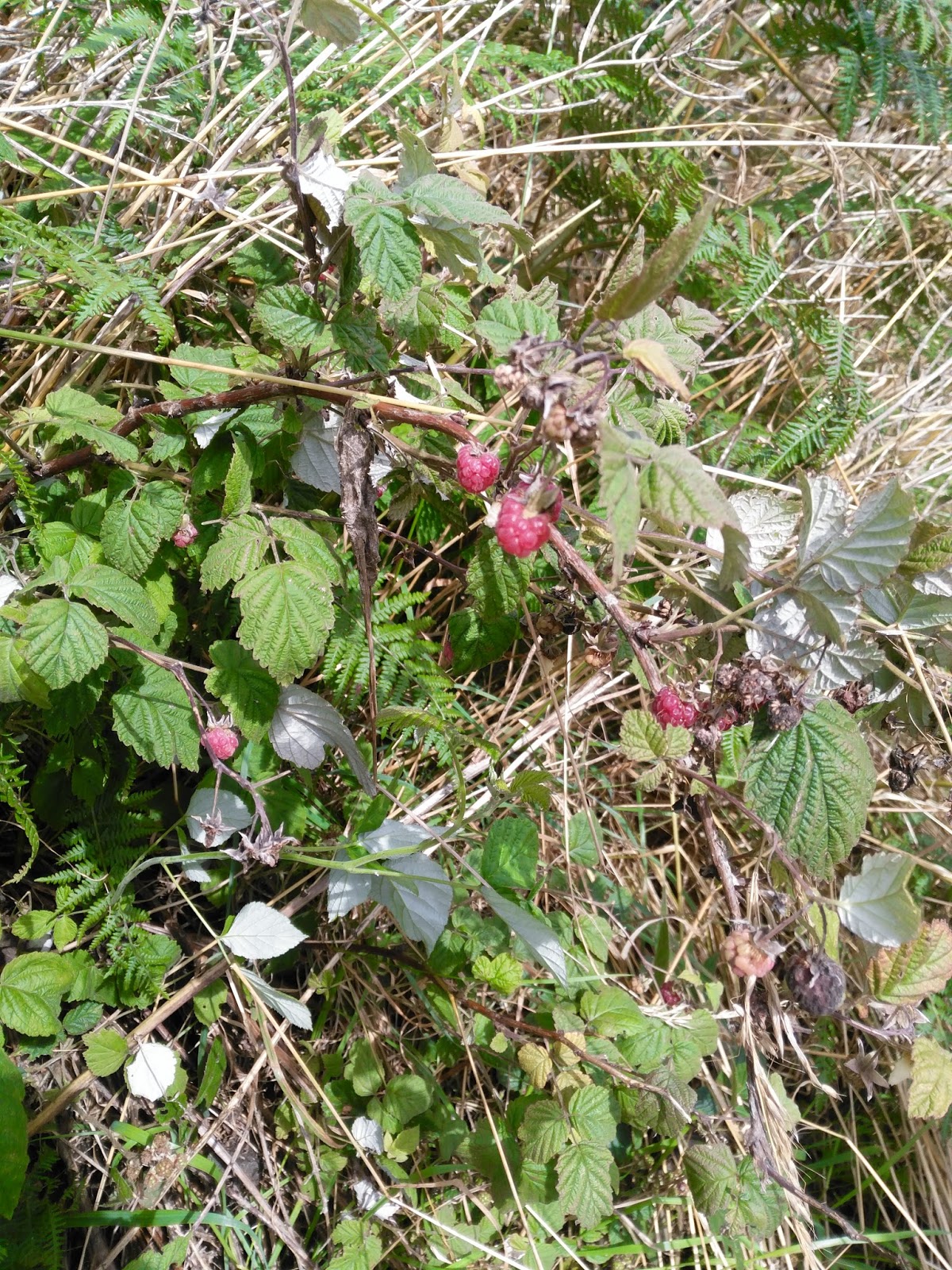 Up the road and to the stone seat which read Ilkley 81 miles. After the small hill we were already taking off layers. A few walkers passed us and I asked for a starting snapshot. Time to walk! It’s was a gradual start as we followed the rocky path up to our first kissing gate of many. And our first bramble bush and raspberries bush! Never seen so many wild raspberries. We proceeded to devour them as we walked. Following the signposts we marched on and gained height.