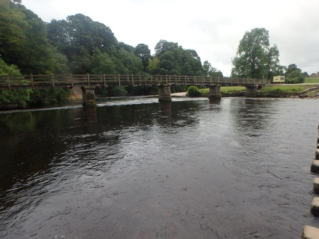 Well! What a windy night! It only just started when we went to sleep. I could hear it coming through the trees first, travelling down through the valley before striking at the tent. Tom was on the windy side so the tent flattened him first leaving me untouched. He eventually got out to re-peg the tent at midnight. I slept on and off through the night. Rain struck at some point and splattered sporadically. Waking for 5 am – by this point we’d have enough so were walking by 6 am. We didn’t have to go far to reach Barden bridge following the track. Continuing on we follow the River Wharf and enter the Strid wood. It’s a dense wood and lovely to be hiking through it. We pass by the Cavendish Pavilion which was closed till 8 am so we refill our water and keep going. It isn’t far to Bolton Abbey as we follow the ebb and flow of the path.