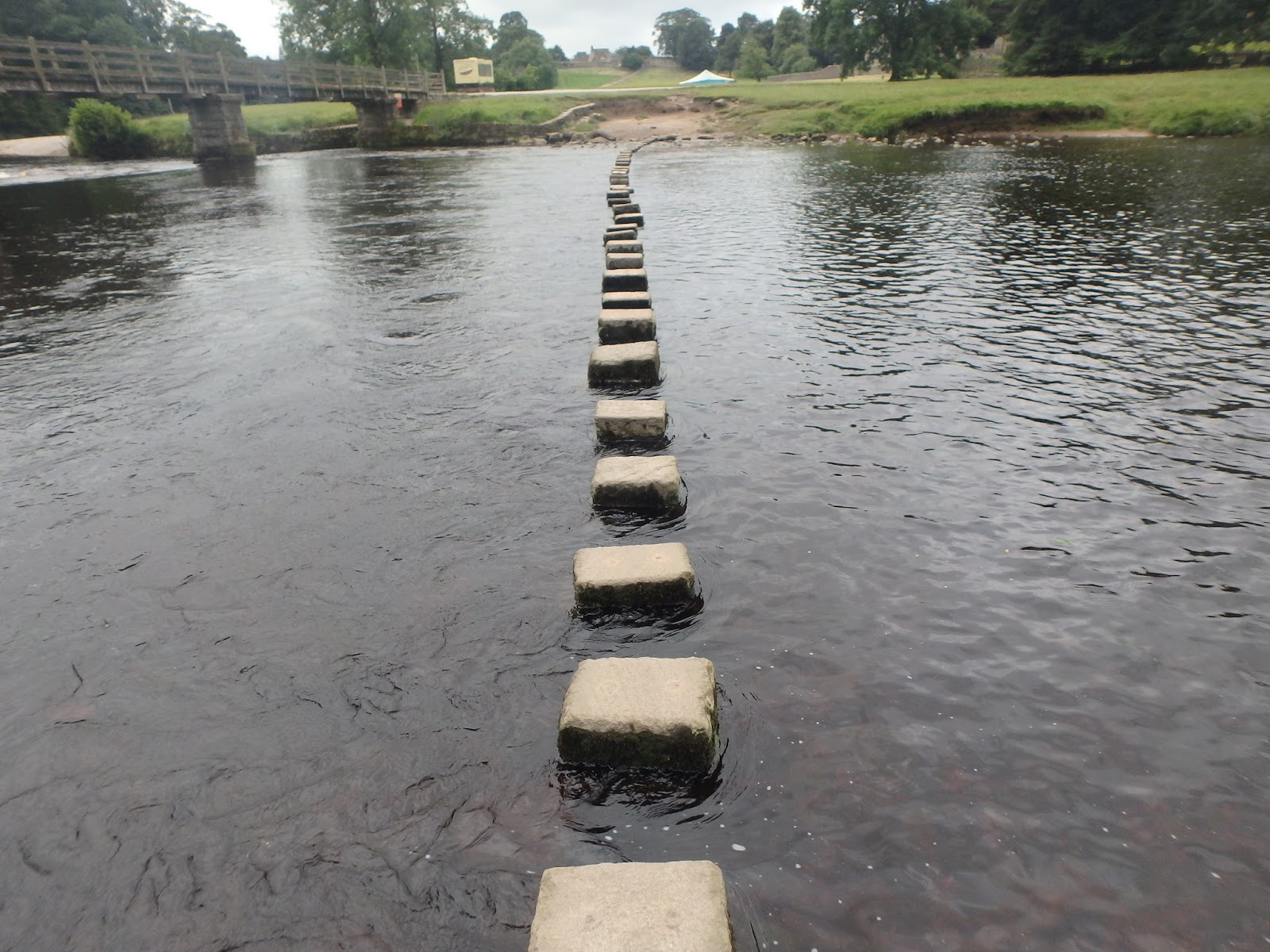 Outdoor activities for kids such appear around each bend and we occasionally get glimpses of Bolton Abbey. We head into the grounds and I chose to cross via the stepping stones. The abbey stands in all its crumbly beauty in the dull morning light. I’m glad it’s free to venture inside. We take a moments rest and chill in the grassland and play Pokemon Go. Along the river and through a forest and then Tom’s knee pain returns. Luckily only two miles remain and we soon got these done. Ilkley comes into view after the last bend of the river and we come back into civilisation after briefly leaving it. Then flower shop I’d read about in the guide book appears next to the old bridge and where we find the twin stone bench.