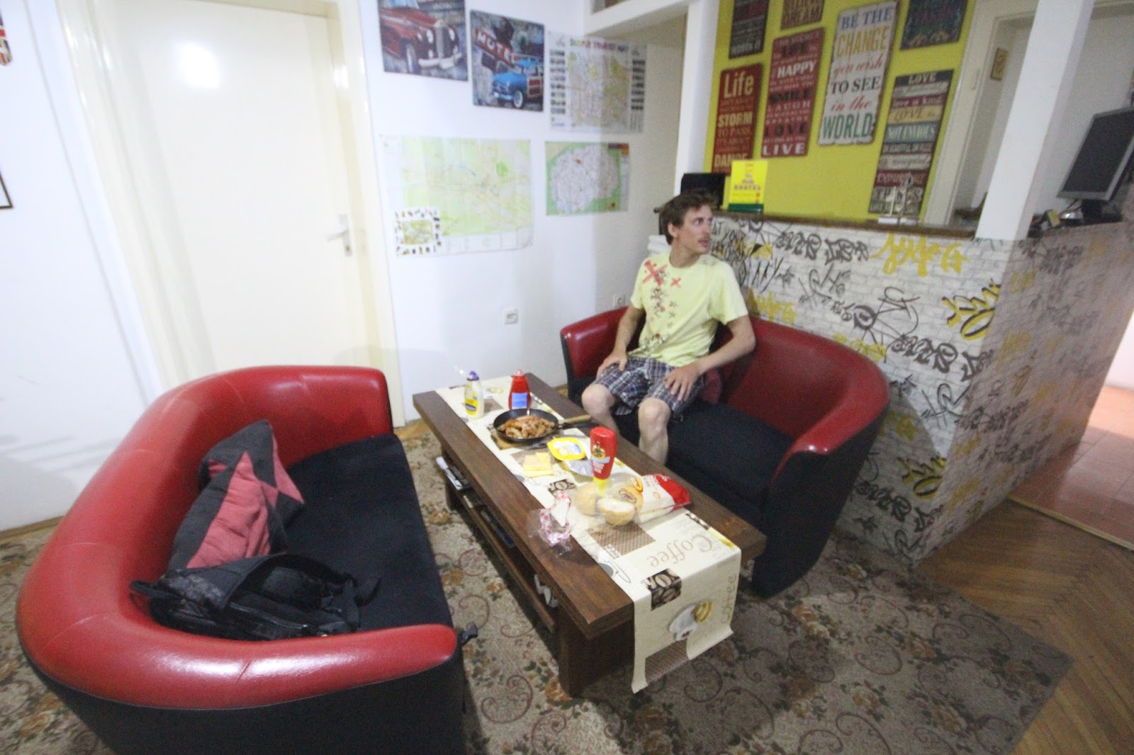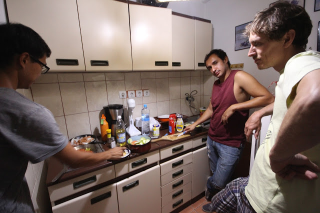Our last meal together was hot dogs and fried vegetables. Tomorrow we’d be going on our separate ways; Stefan back home – he was going to leave his bike here, Rba was hitching to Sofia, Hernando was continuing his tour of the Balkans and I was going to get the bus to Pristina.