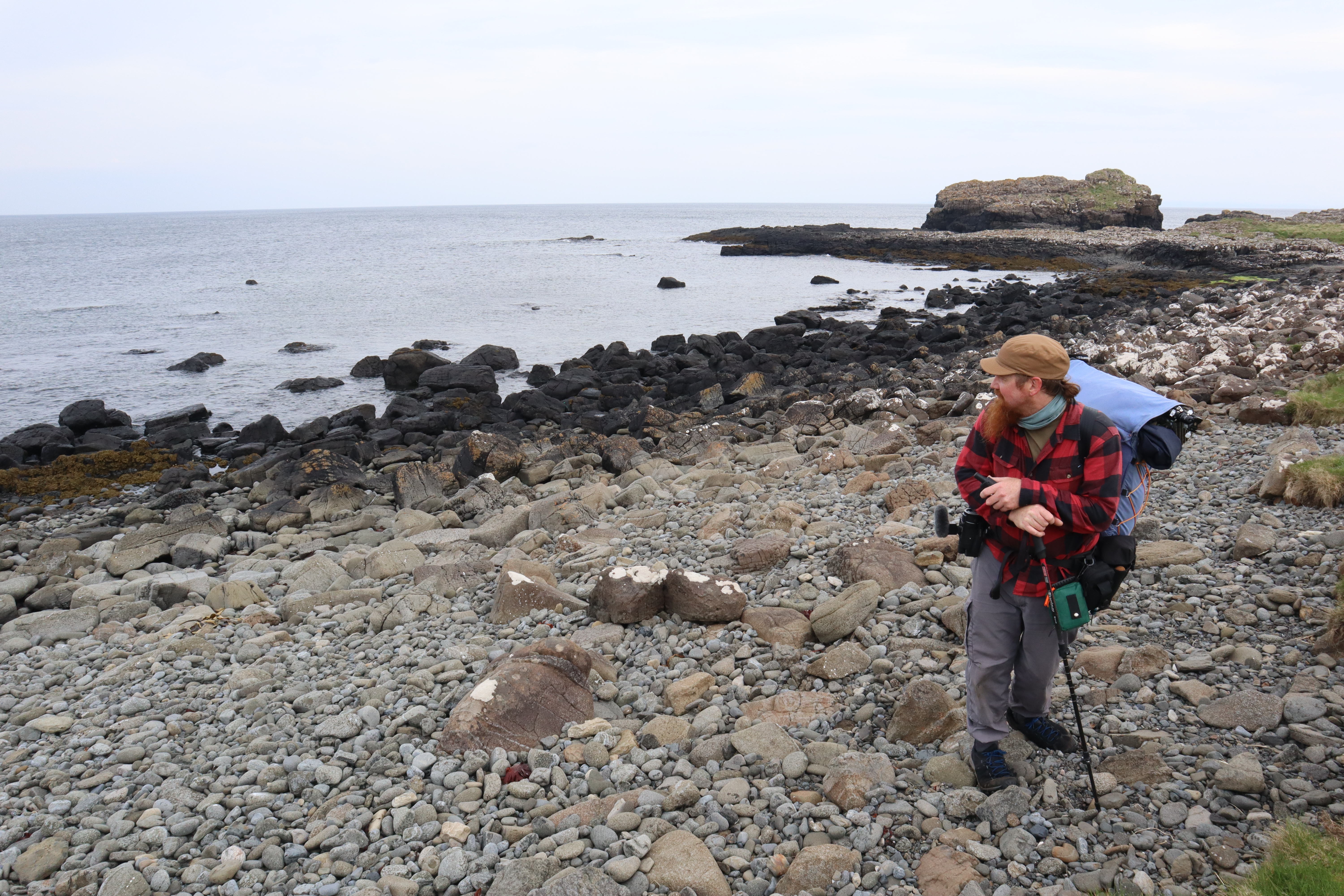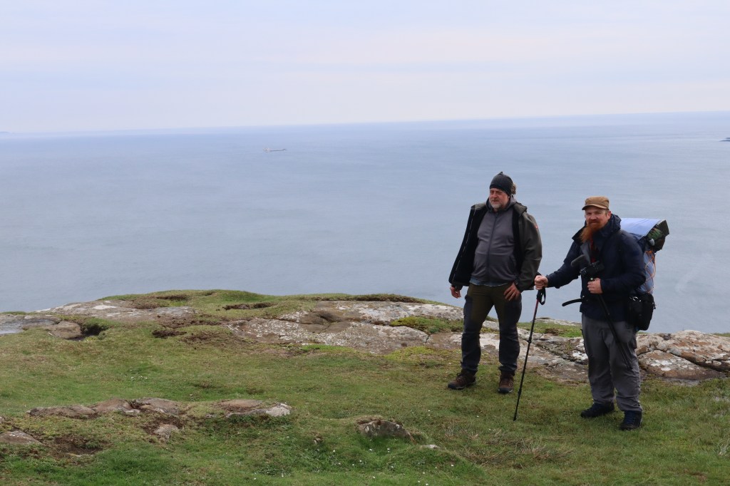 Hiking from 7:30am we follow the track arrive at Rubha Hunish which is the northern point of the headland and houses a bothy. We arrive to an international crowd with folk from New Zealand, Netherlands, Germany, Czech, UK and the US. Some were rolling up tents, slurping on hot drinks or just enjoying the company. I quickly pop in, squeeze my way to the bothy’s book and sign our names there. We march on and find somewhere dry-ish and sheltered to have breakfast.