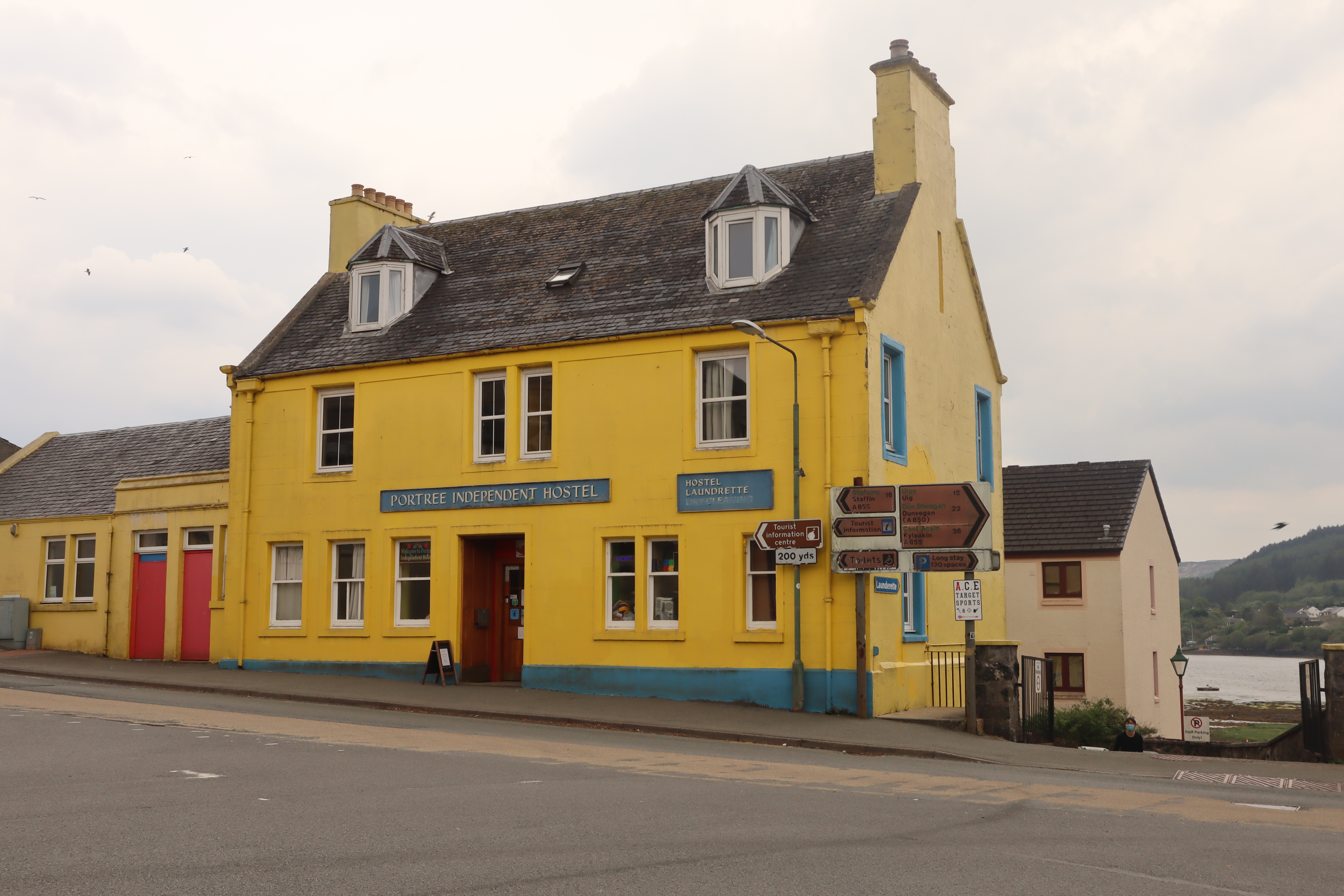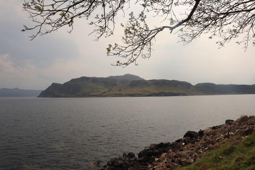 Even though we’re finished with the big hills of the trail, there we’re still ascents coming our way. Today involves a 500m climb over 5 hills as we approach Portree – the capital of Skye. The sea returns and appears on your left. Up and down we go, hiking through bogs and marshland. I opt for walking bare foot in attempts to avoid getting my trail shoes wet. Up and down, the wind picks up and a little sun peeks out from the clouds. The threat of rain lingers above. Portree seems near and yet so far away. We catch glimpses of it around bends and then it vanishes only to reappear an hour later, far away in the distance. The promise of fish and chips and donuts keeps us marching on.