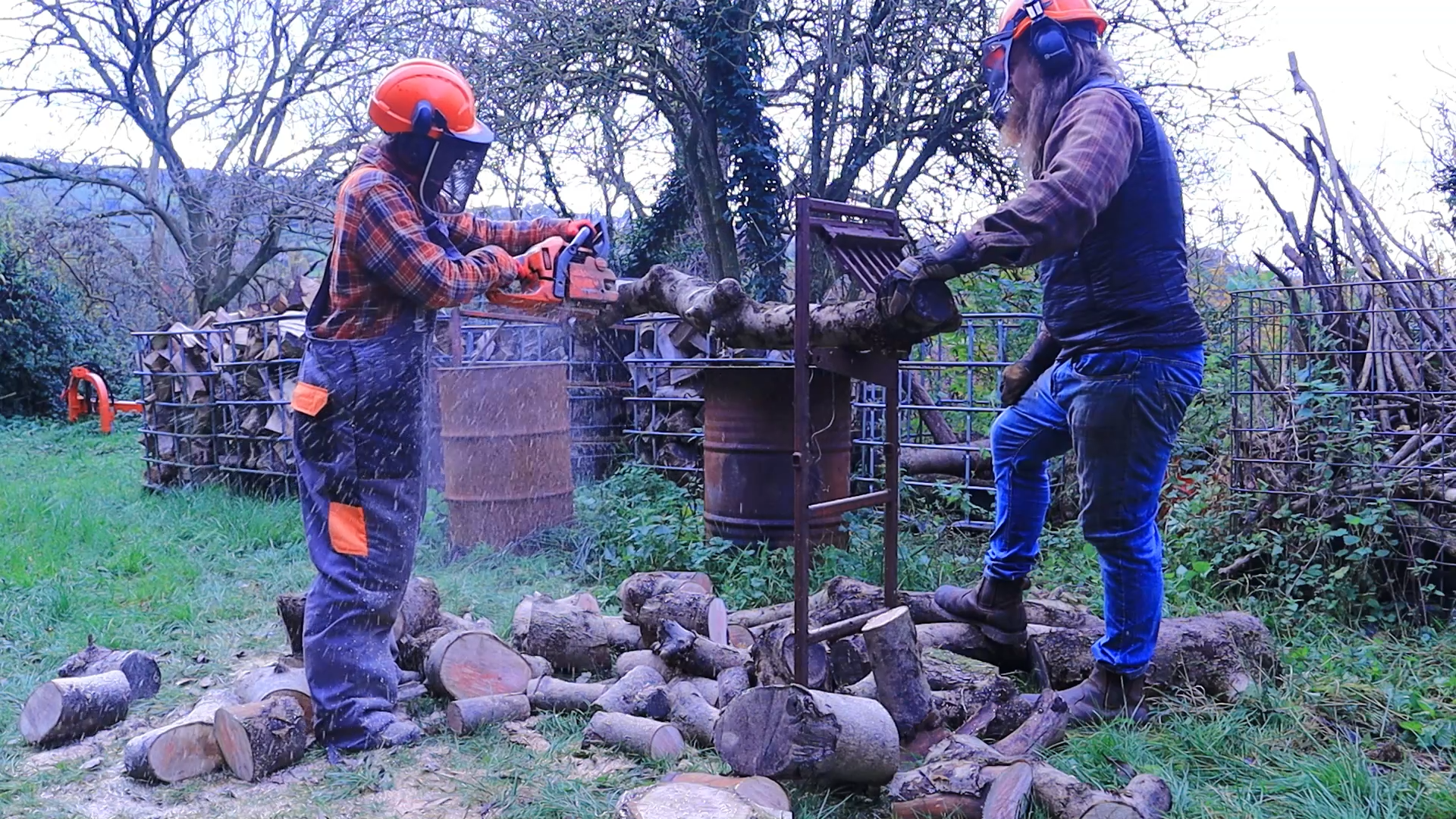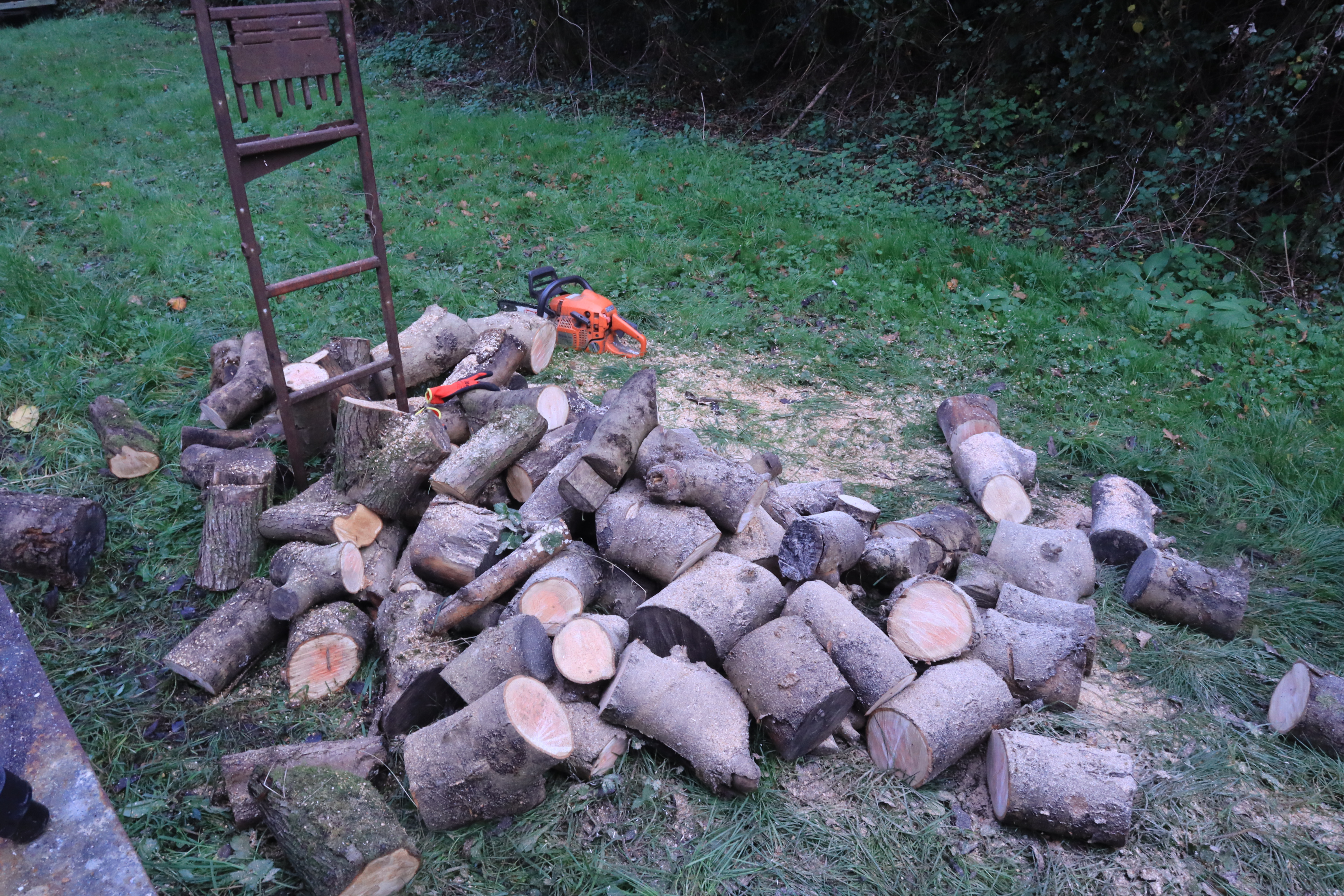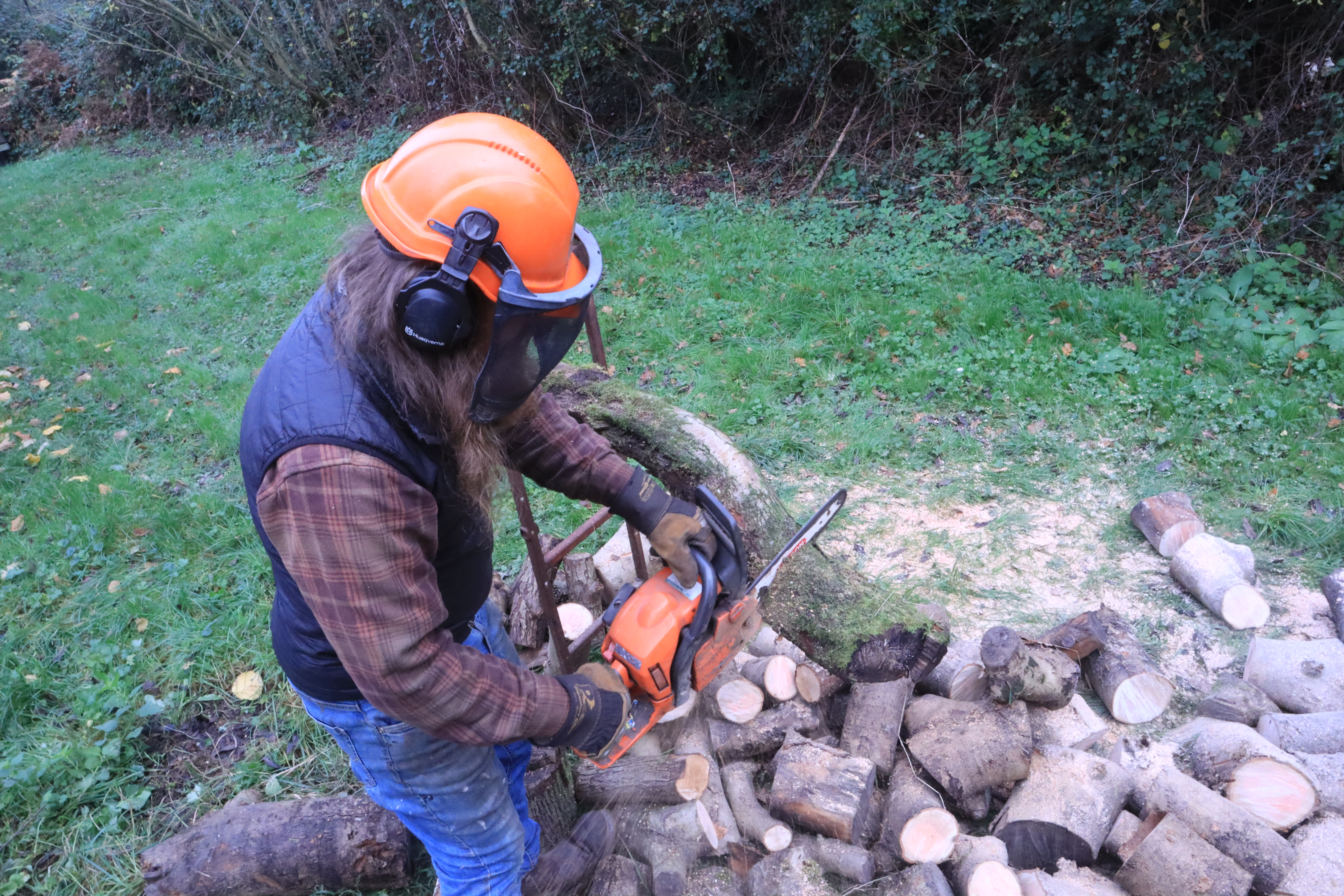Thankfully Max is patience and we have a huge pile of wood for my to have a go on. It is tricky at first as I keep stalling the chainsaw… and I struggle to achieve the correct way to make the chainsaw bite into the wood. I also struggle to pull the cord and bring it to life…