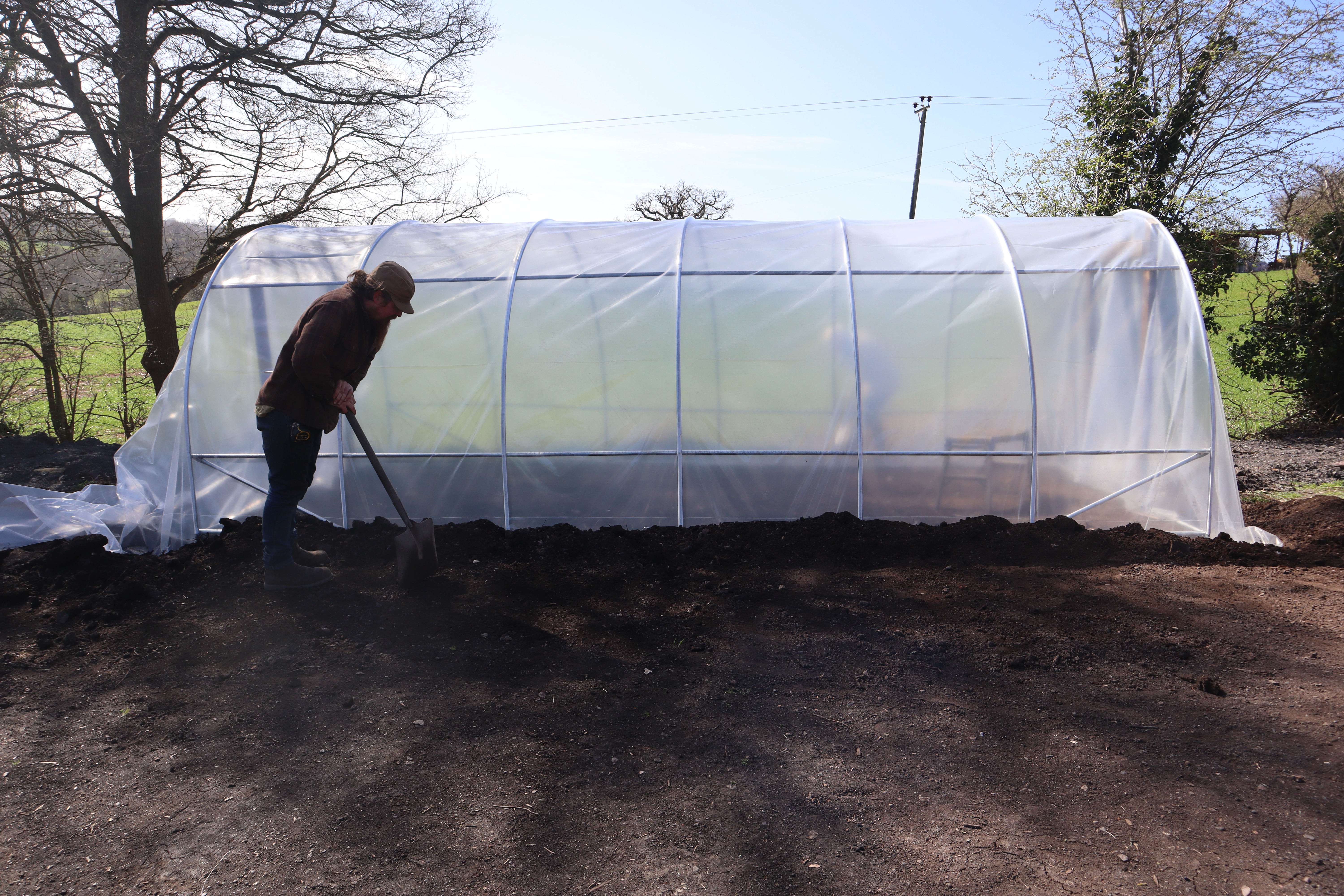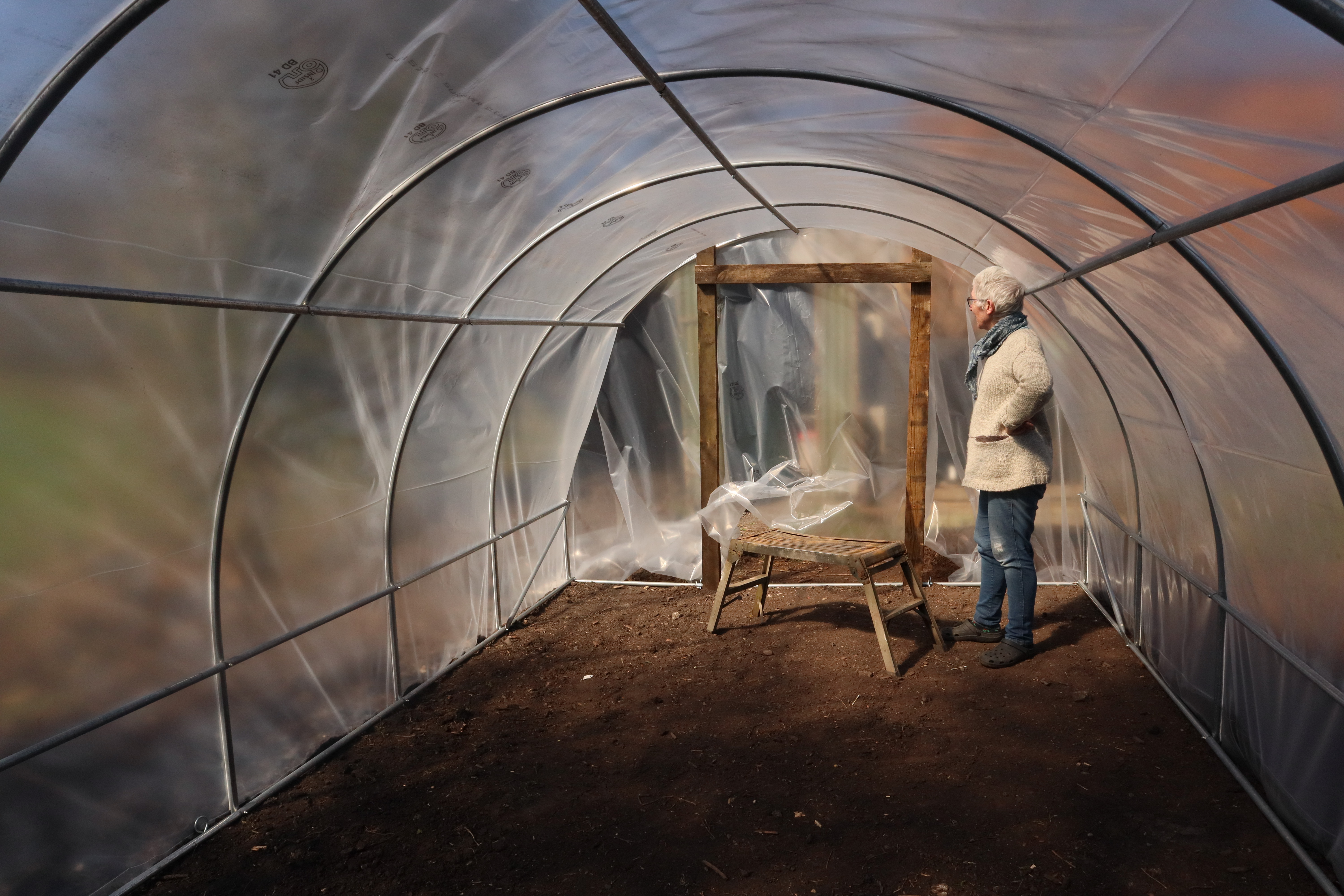 We brought a standard frame and then purchased some heavy duty poly tunnel plastic too ensure it would stand up to the winter storms.