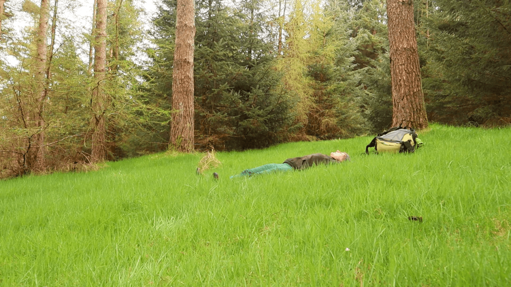 Returning to the forest, I venture along trails and up dry streams. It’s extremely quiet, few birds call out and I hear a cuckoo. I’d spotted a potential spot to camp and returned please to find myself the only human around. Long, green grass creates the perfect bed and I pitch my tent and prepare for bed.